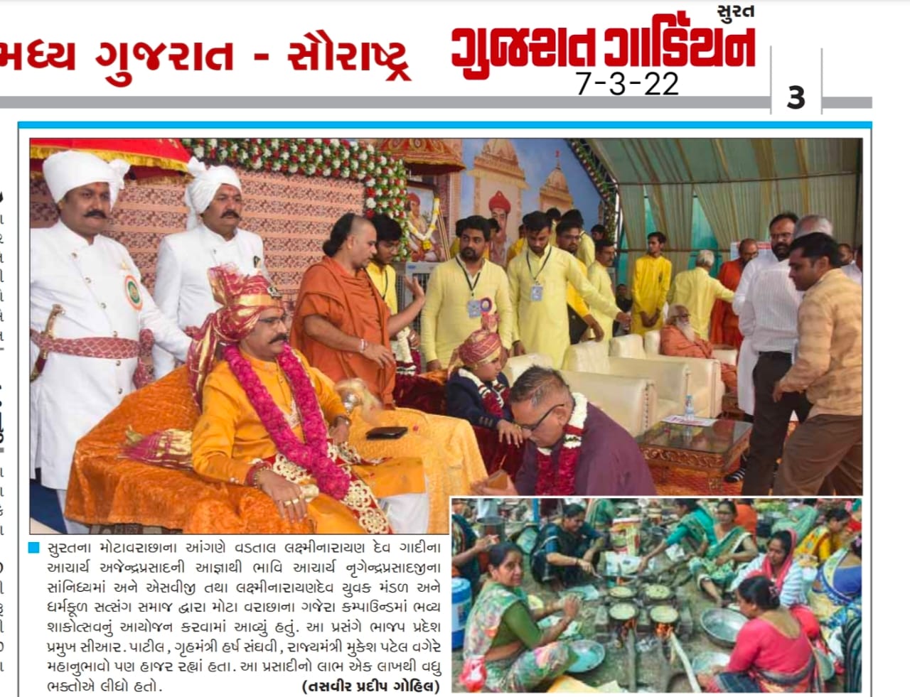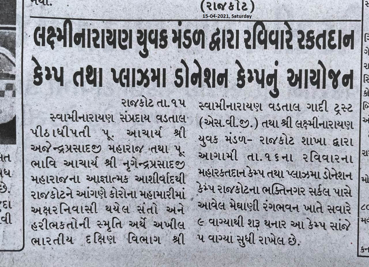 Laxminarayan Dev Yuvak Mandal (LNDYM) was founded by H.H. 1008 Acharya Shree Ajendraprasadji Maharaj to serve as the youth-wing of Swaminarayan Vadtal Gadi (SVG). The organization is operated from Raghuvir Vadi, Vadtal, India with guidance from Shree Swaminarayan Mandir, Vadtal. Currently, H.H. 1008 Acharya Shree Ajendraprasadji Maharaj is the President of the organization, H.H. 108 Bhavi Acharya Shree Nrigendraprasadji Maharaj is the Vice President, and Nana Lalji Shree Pushpendraprasadji Maharaj is the Advisor. LNDYM was established with the intention of educating today’s youth about the Hindu Sanatan Dharma along with teaching them how to pursue challenges in life and confronting them with optimism as well as creating the opportunity to help the community.