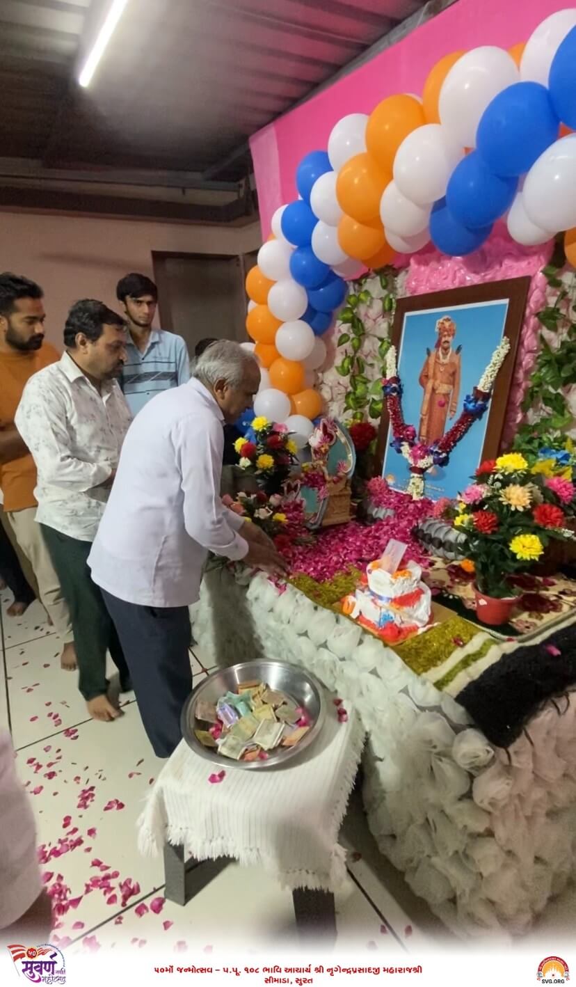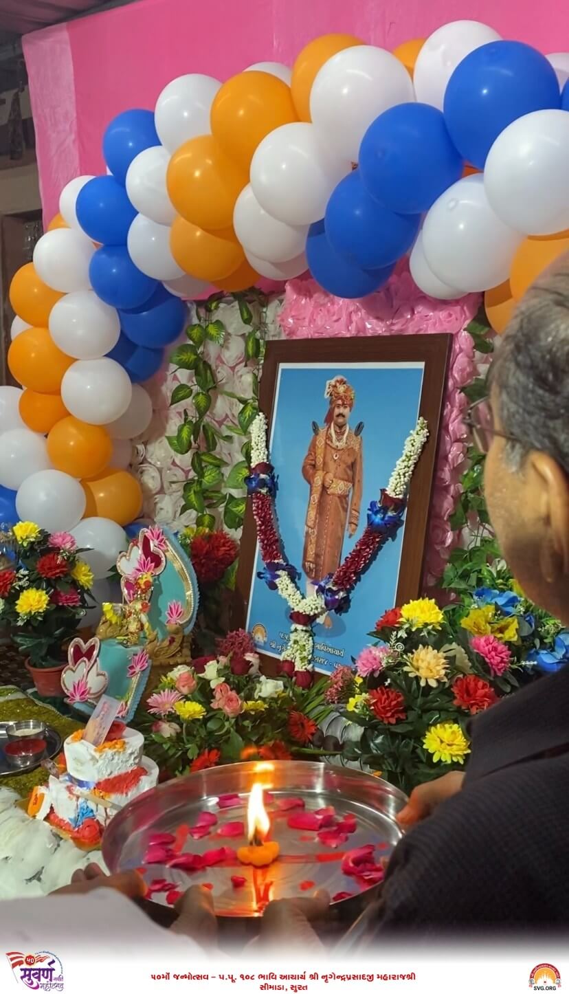 તારીખ 30/03/2022, શનિવારના રોજ રાજકોટ અને સુરતના આંગણે શ્રી સ્વામિનારાયણ સંપ્રદાયસ્ય દક્ષિણ વિભાગ શ્રી લક્ષ્મીનારાયણદેવ પિઠાધીપતિ પ.પૂ.સ.ધ.ધુ. શ્રી ૧૦૦૮ આચાર્ય શ્રી અજેન્દ્રપ્રસાદજી મહારાજશ્રીના સુપુત્ર શ્રી લક્ષ્મીનારાયણદેવ ગાદીના પ.પુ. ધર્મકુળ મુગટમણિ ૧૦૮ ભાવિ આચાર્ય શ્રી નૃગેન્દ્રપ્રસાદજી મહારાજશ્રીના 50માં જન્મોત્સવની ઉજવણી કરવામાં આવી.