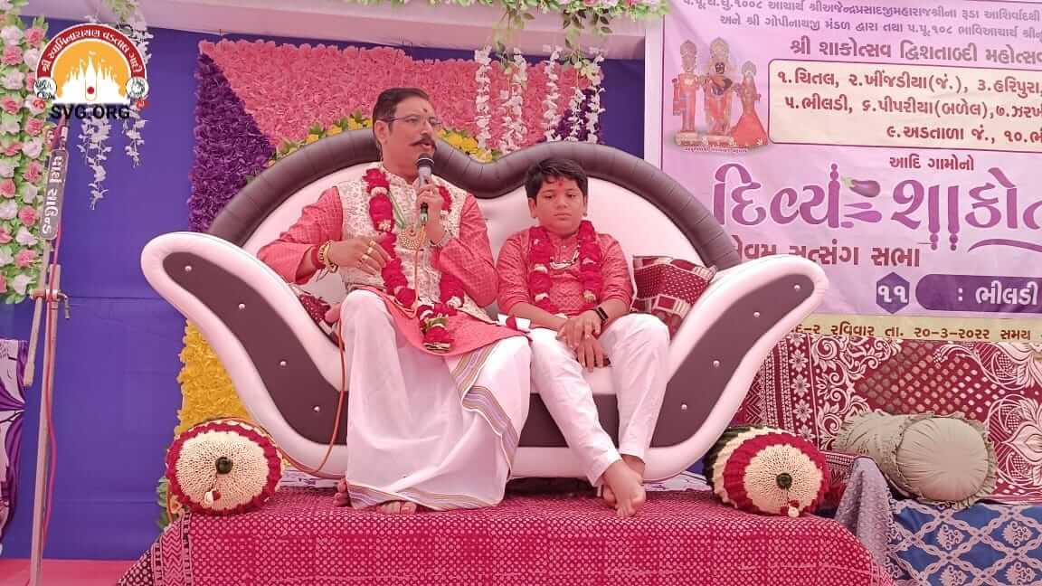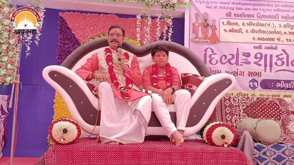 તારીખ 20/03/2022, રવિવારના રોજ ચિતલ, ખીજડીયા(જં.), હરિપુરા, દેવળીયા(મોટા), ભીલડી, પીપરીયા(બળેલ), ઝરખીયા, ગોવિંદપુર, અડતાળા(જં.), ભીલા આદિ ગામોએ ભેગા મળીને ભીલડી ગામને આંગણે દ્વિશતાબ્દી વર્ષ અંતર્ગત દિવ્ય શાકોત્સવ ઉજવ્યો. આ શુભ પ્રસંગે પ.પુ. ૧૦૮ ભાવિ આચાર્ય શ્રી નૃગેન્દ્રપ્રસાદજી મહારાજશ્રી તેમજ પ.પૂ. બાળલાલજી મહારાજ શ્રી યજ્ઞેન્દ્રપ્રસાદજી મહારાજ પધાર્યા અને ભક્તોને રૂડા આશીવાદ પાઠવ્યા….