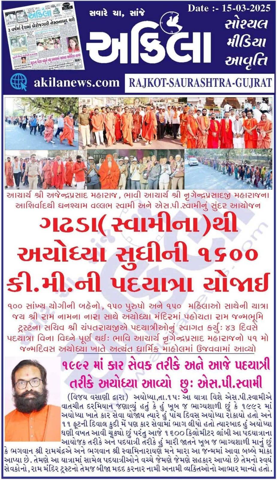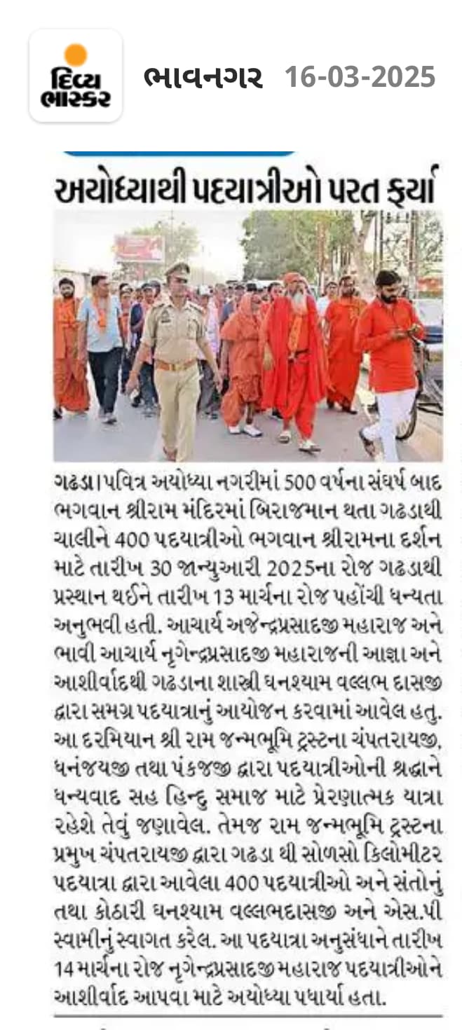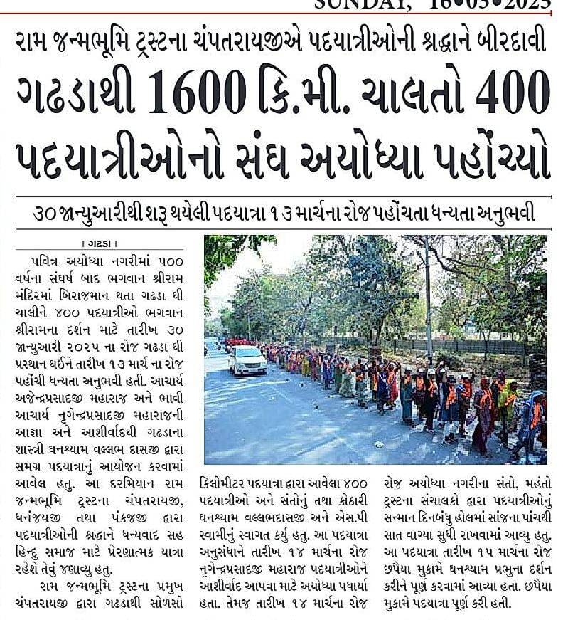 Gadhpurthi Ayodhya, Chapaiya Padyatra || 3 Jan to 13 March || 2025