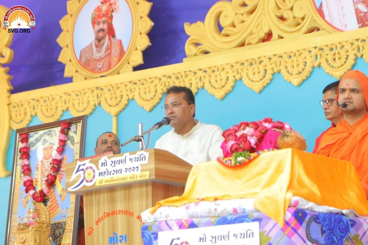 શ્રી મોરા ધામ શ્રી સ્વામિનારાયણ મંદિરના 50 માં પાટોત્સવની નિમિત્તે સુવર્ણ જયંતિ મહોત્સવ અંતર્ગત સ્વામી છપૈયાપ્રકાશદાસ-ગઢપુર ના વક્તા પદે ચાલતી કથામાં પ.પુ. ભાવિ આચાર્ય શ્રીનૃગેન્દ્રપ્રસાદજી મહારાજશ્રી પધારી આશીર્વાદ આપ્યા હતાં.