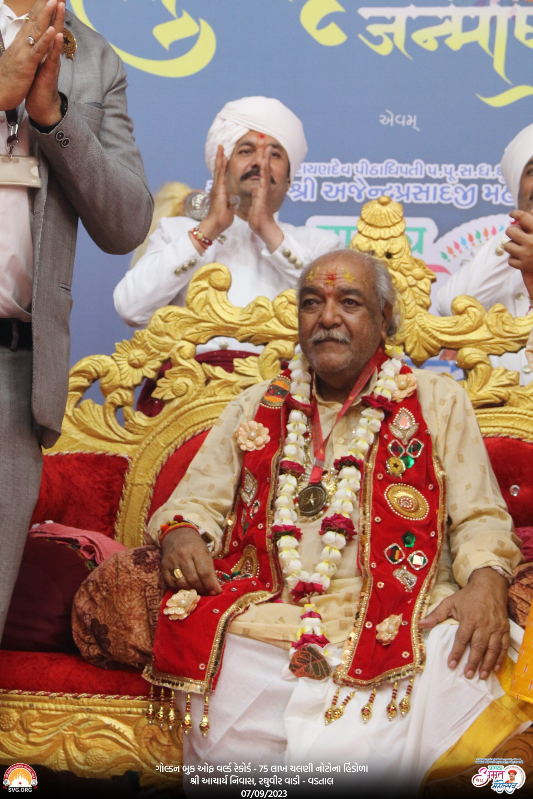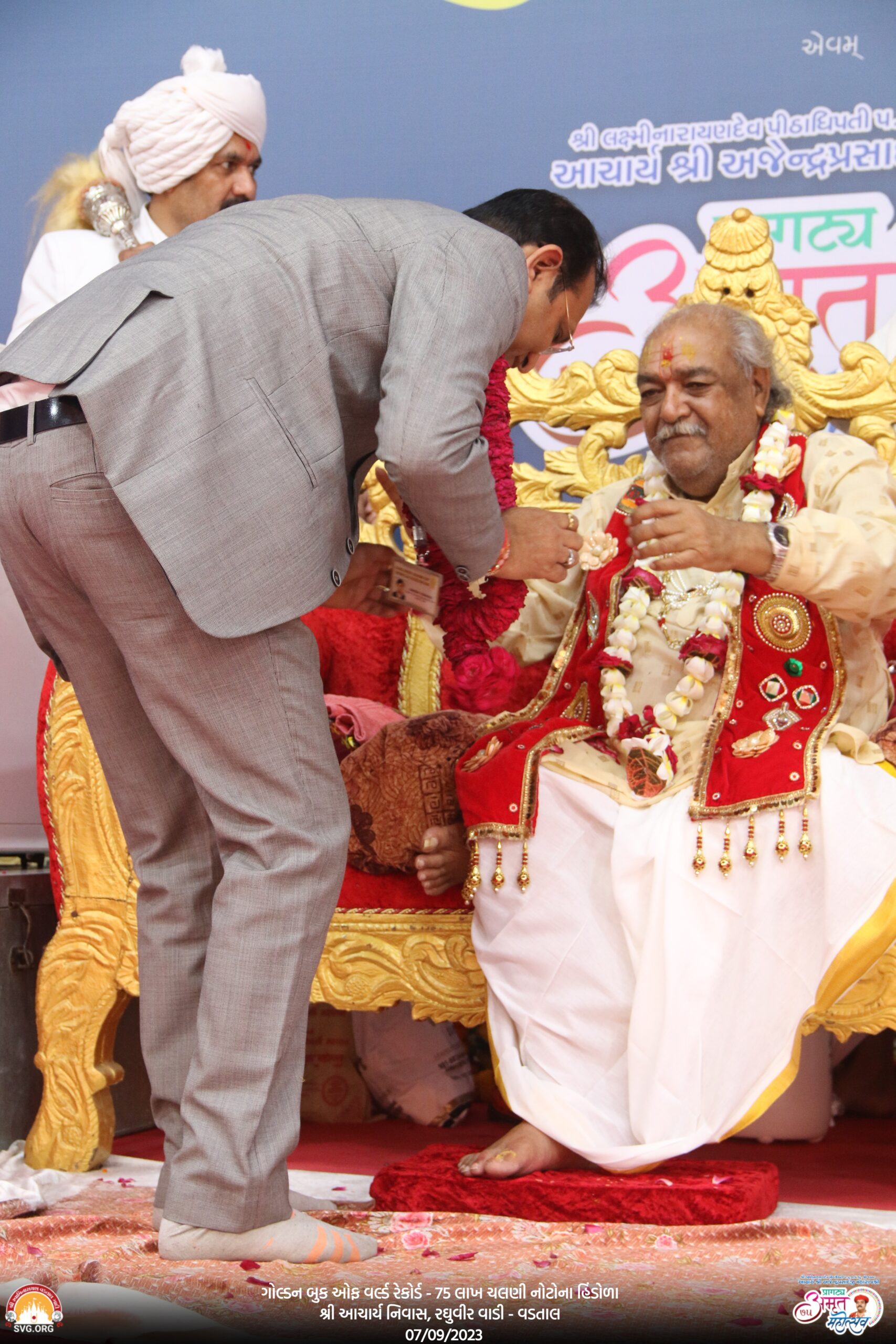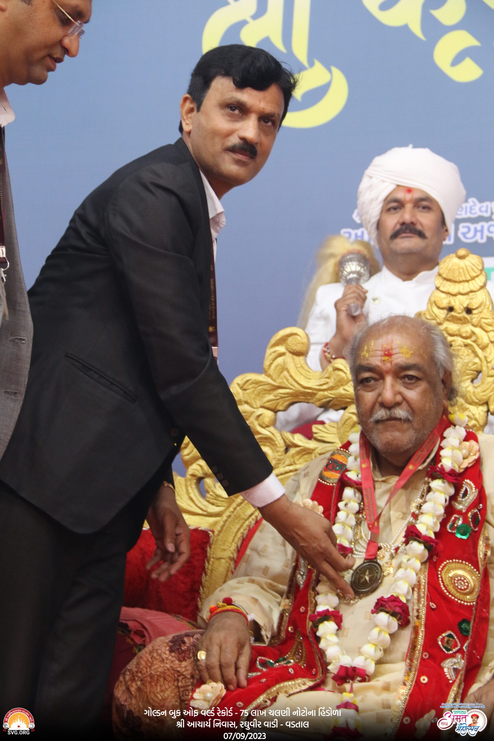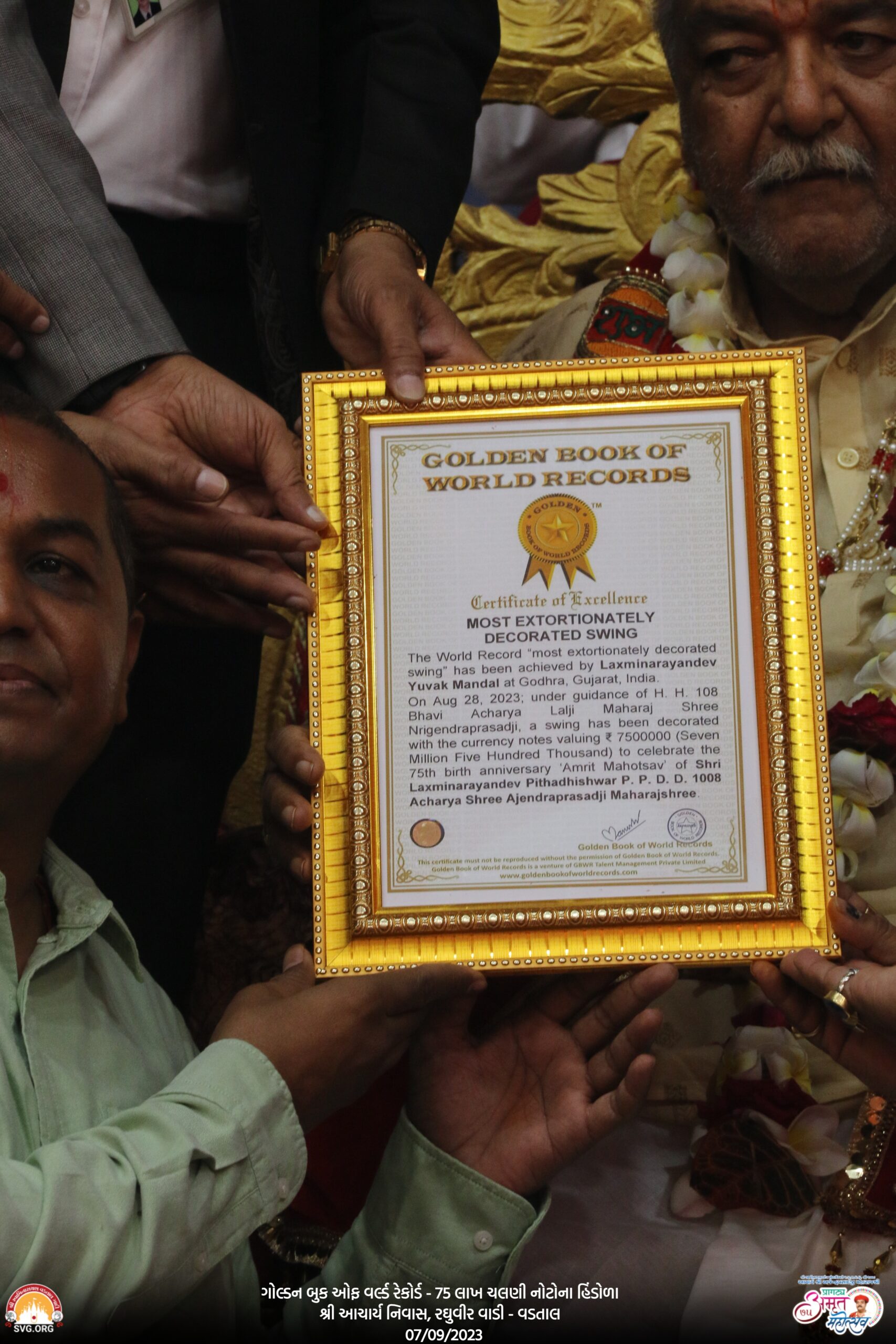 Home » Photo » Raghuvir Vadi : Golden Book of World Records, Hindola Of 75 Lakh Currency Notes || 07 Sep 2023