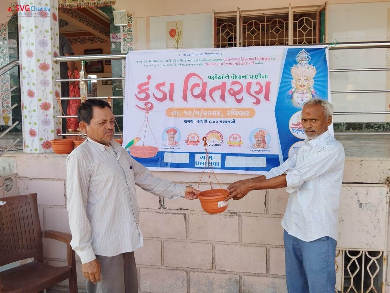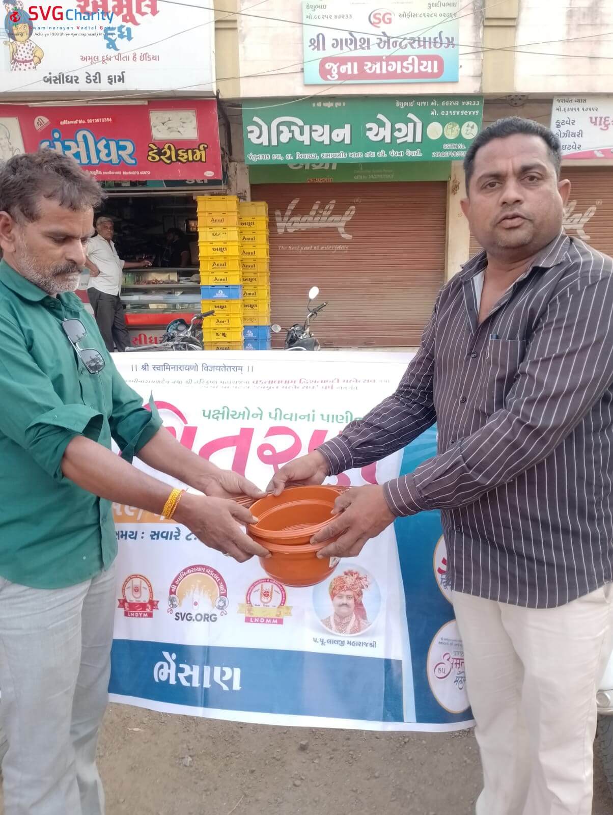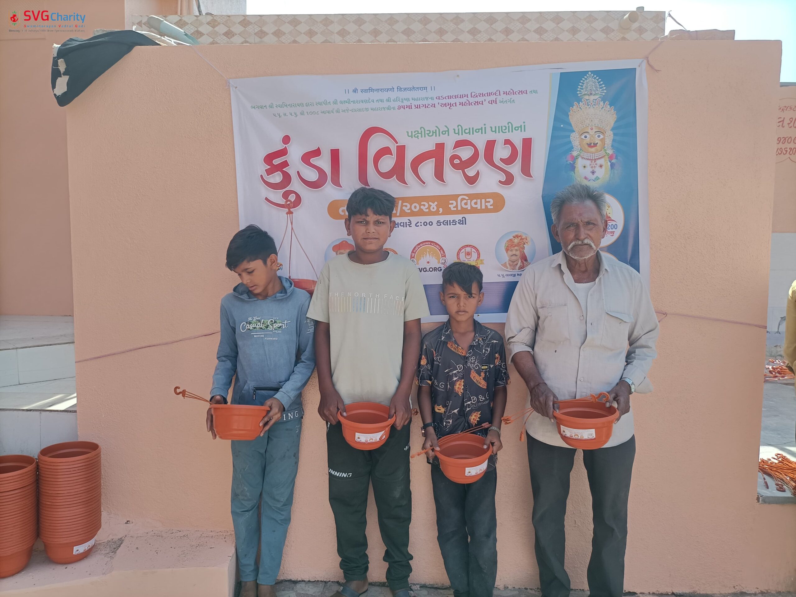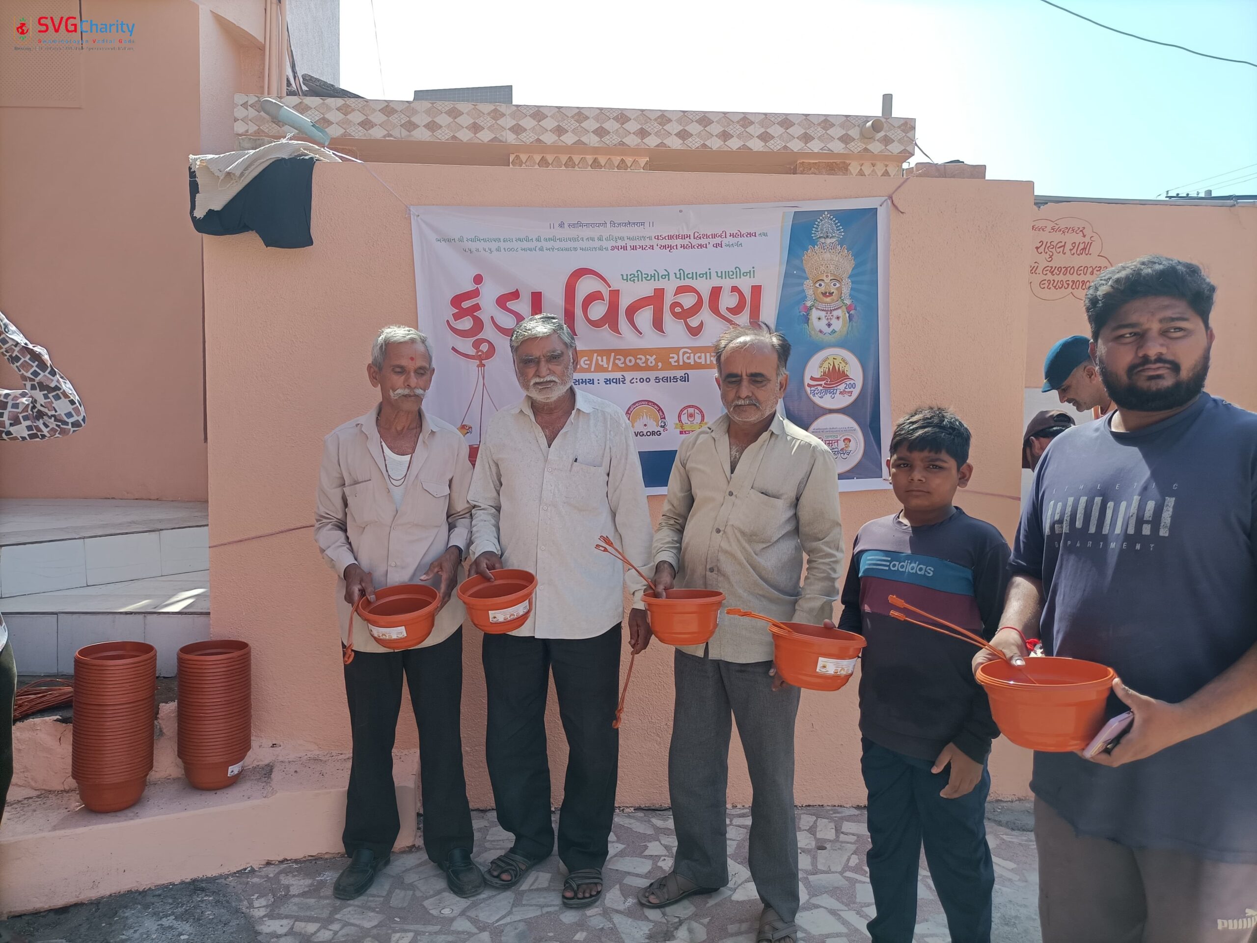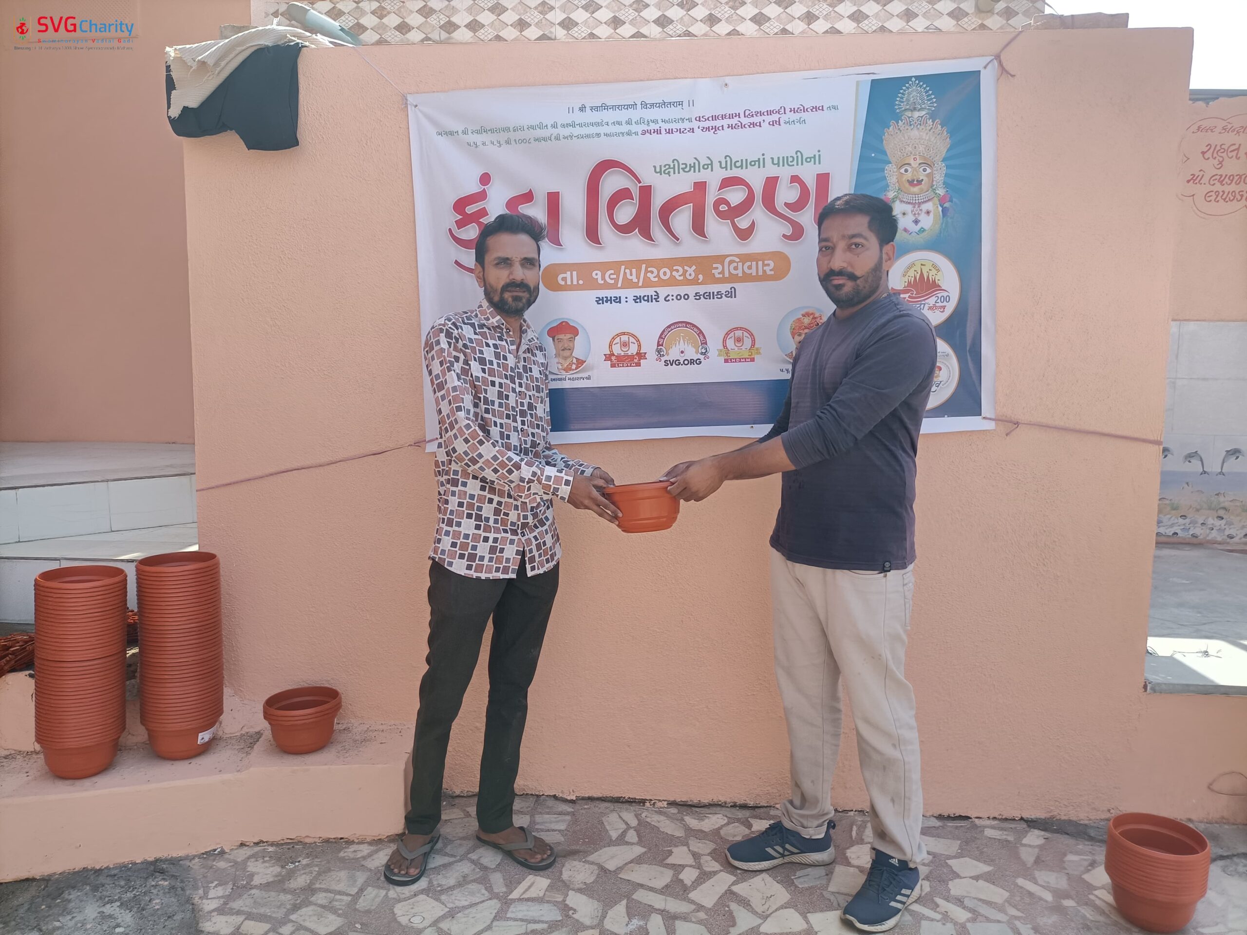 શ્રી સ્વામિનારાયણ સંપ્રદાયસ્ય દક્ષિણ વિભાગ શ્રી લક્ષ્મીનારાયણદેવ પિઠાધીપતિ પ.પૂ.સ.ધ.ધુ. શ્રી ૧૦૦૮ આચાર્ય શ્રી અજેન્દ્રપ્રસાદજી મહારાજશ્રીના 75મો પ્રાગટ્ય અમૃત મહોત્સવ નિમિતે SVG Charity ટ્રસ્ટ દ્રારા પક્ષીઓ માટે વિનામુલ્યે પીવાના પાણીનાં 50 શહેરોમાં 21000 જેટલા કુંડા વિતરણ કરવામાં આવ્યા.