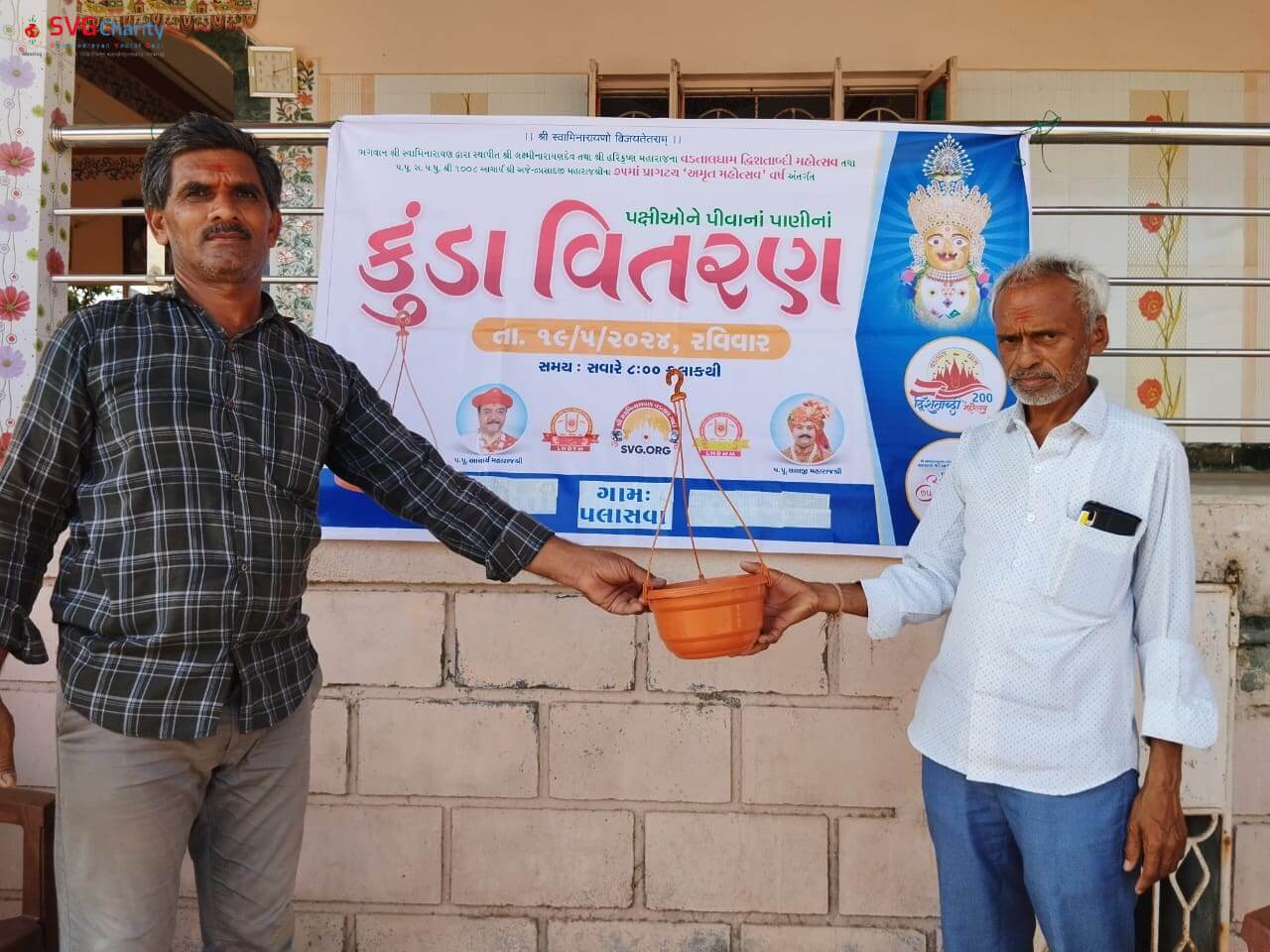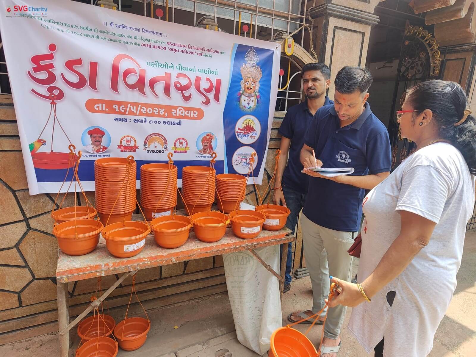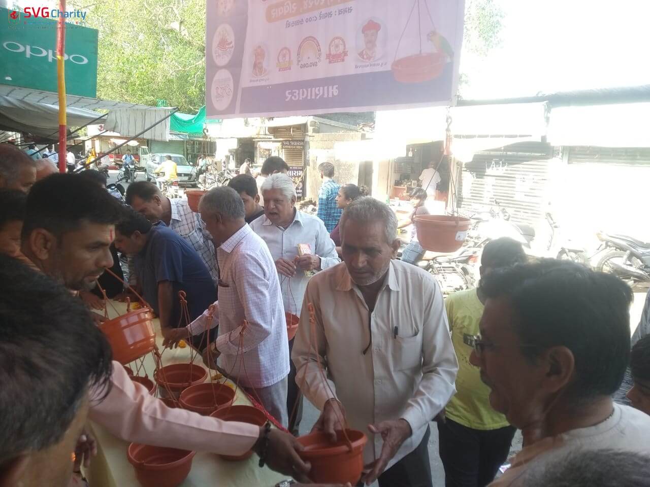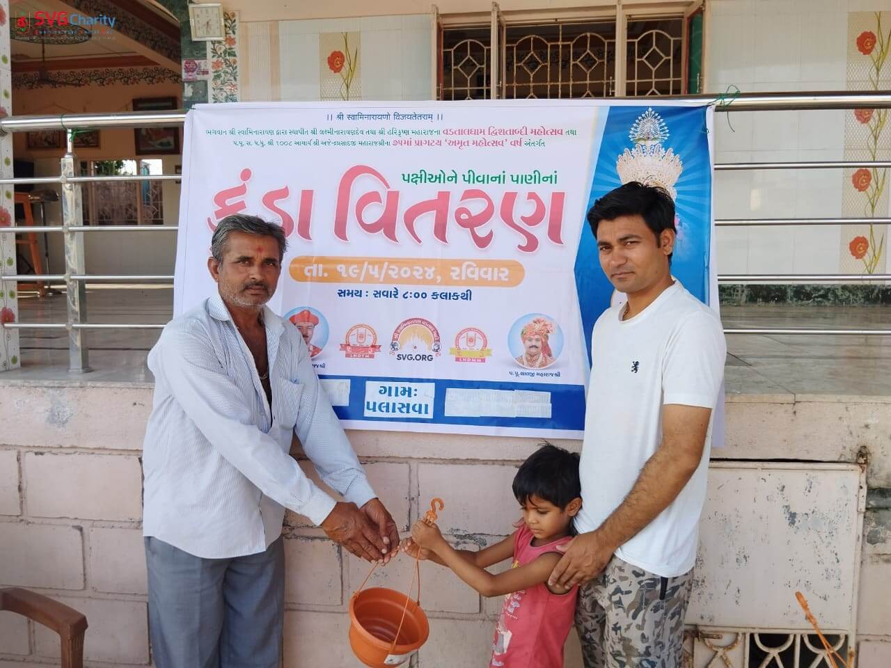 શ્રી સ્વામિનારાયણ સંપ્રદાયસ્ય દક્ષિણ વિભાગ શ્રી લક્ષ્મીનારાયણદેવ પિઠાધીપતિ પ.પૂ.સ.ધ.ધુ. શ્રી ૧૦૦૮ આચાર્ય શ્રી અજેન્દ્રપ્રસાદજી મહારાજશ્રીના 75મો પ્રાગટ્ય અમૃત મહોત્સવ નિમિતે SVG Charity ટ્રસ્ટ દ્રારા પક્ષીઓ માટે વિનામુલ્યે પીવાના પાણીનાં 50 શહેરોમાં 21000 જેટલા કુંડા વિતરણ કરવામાં આવ્યા.