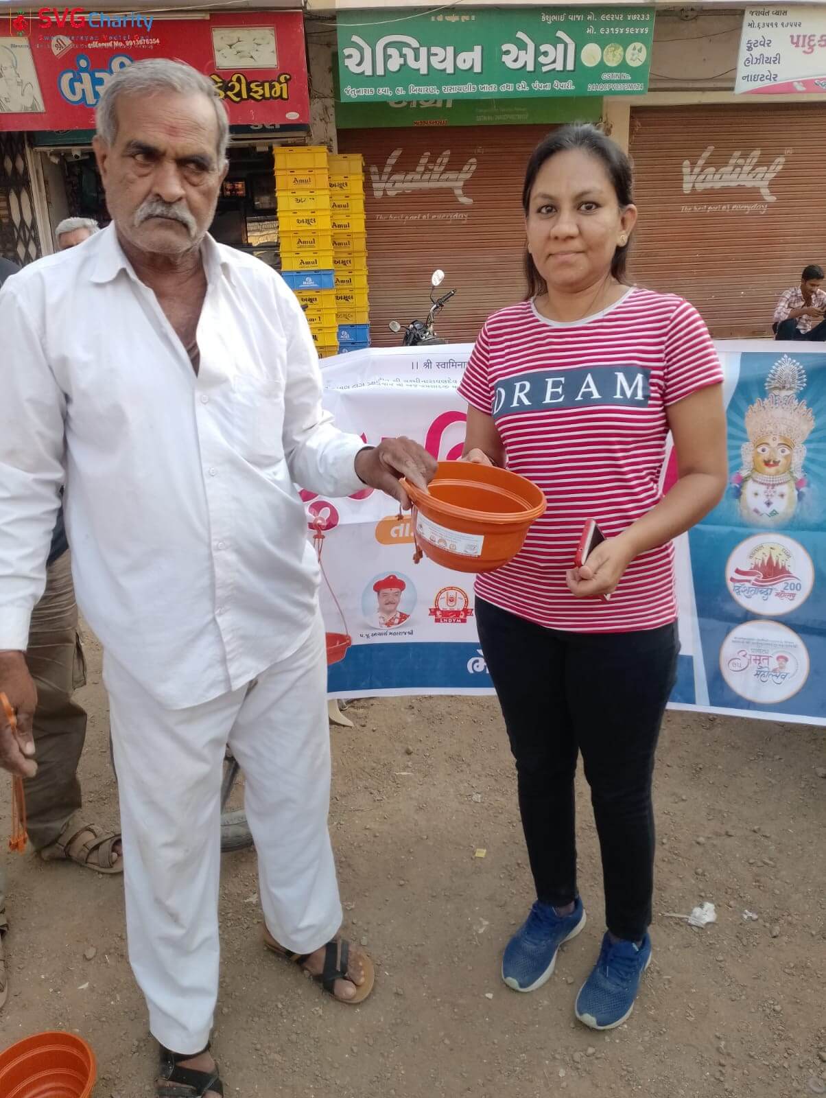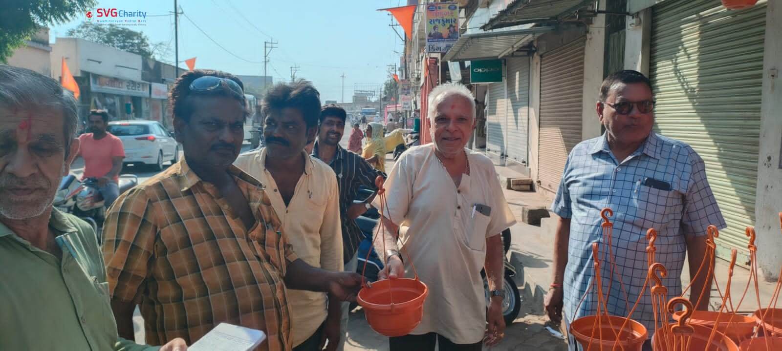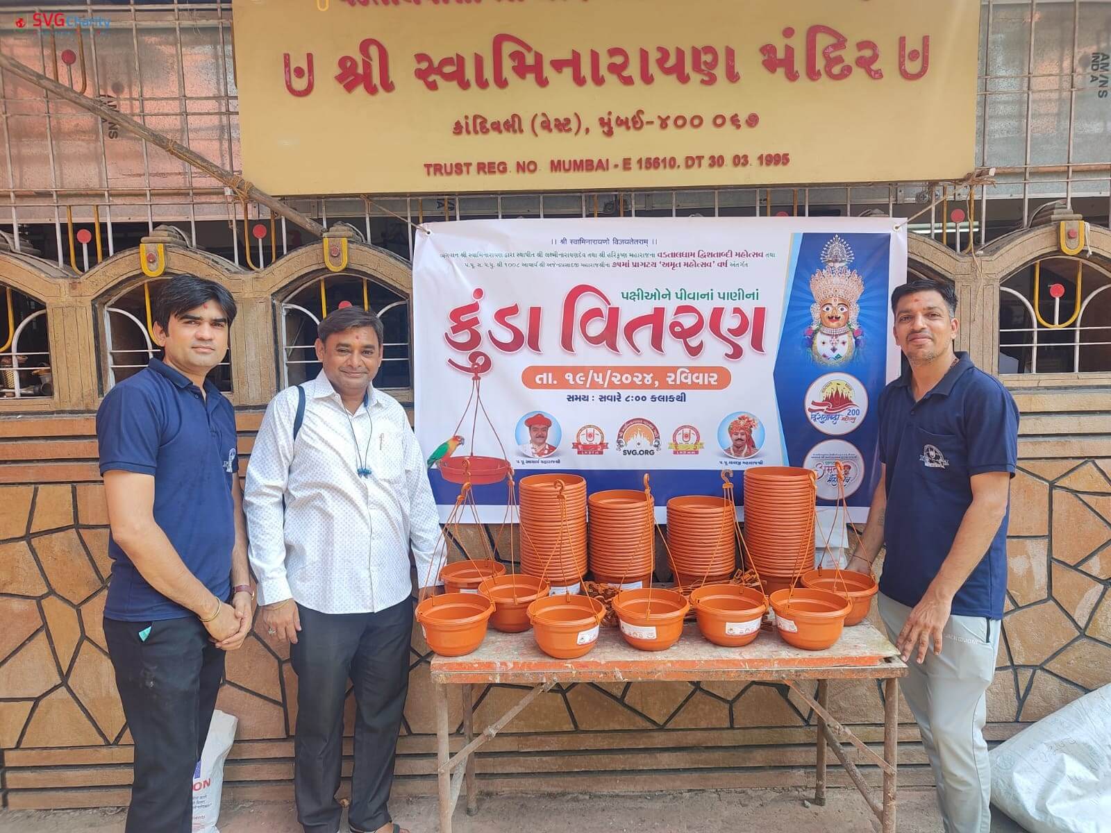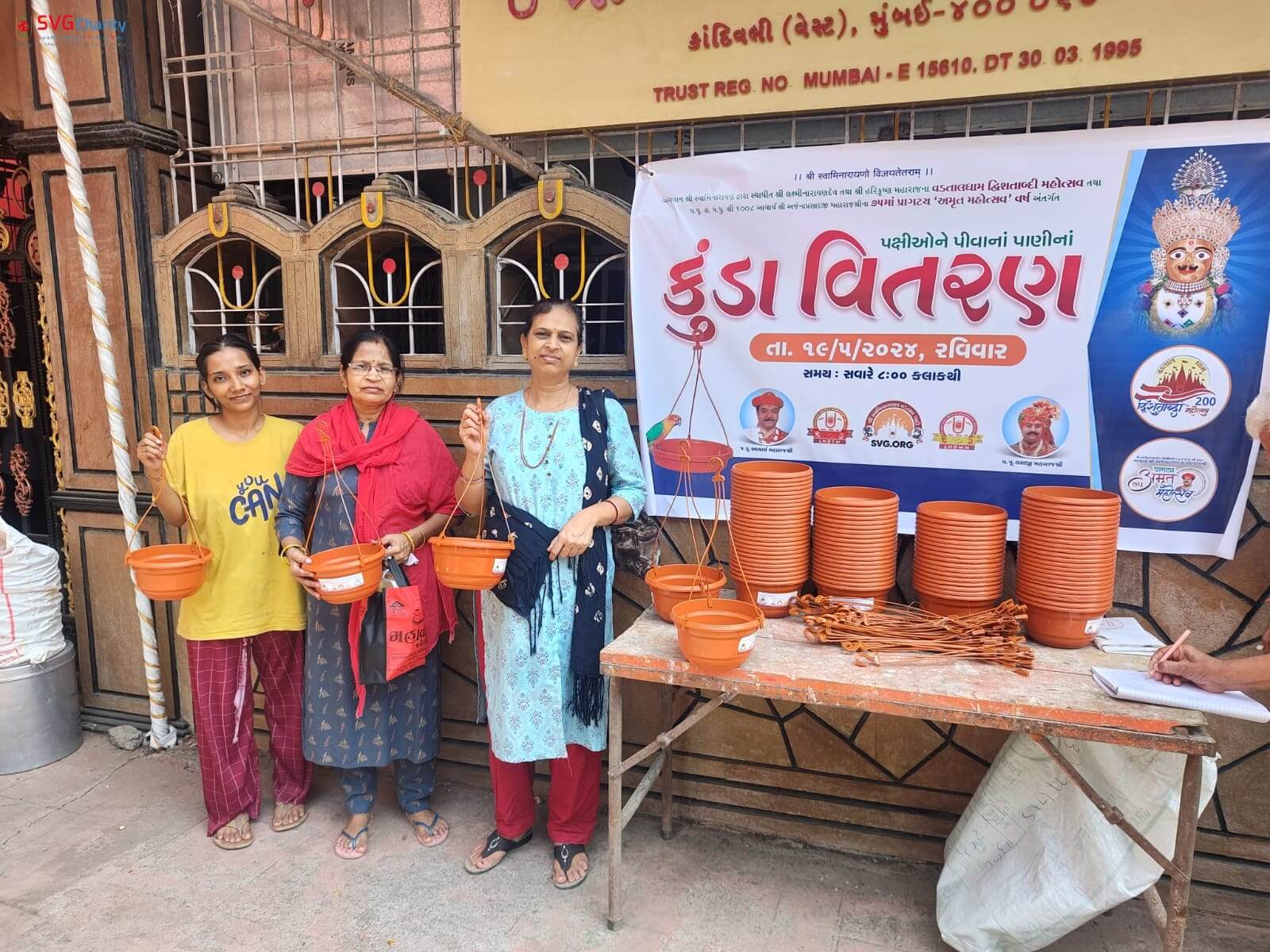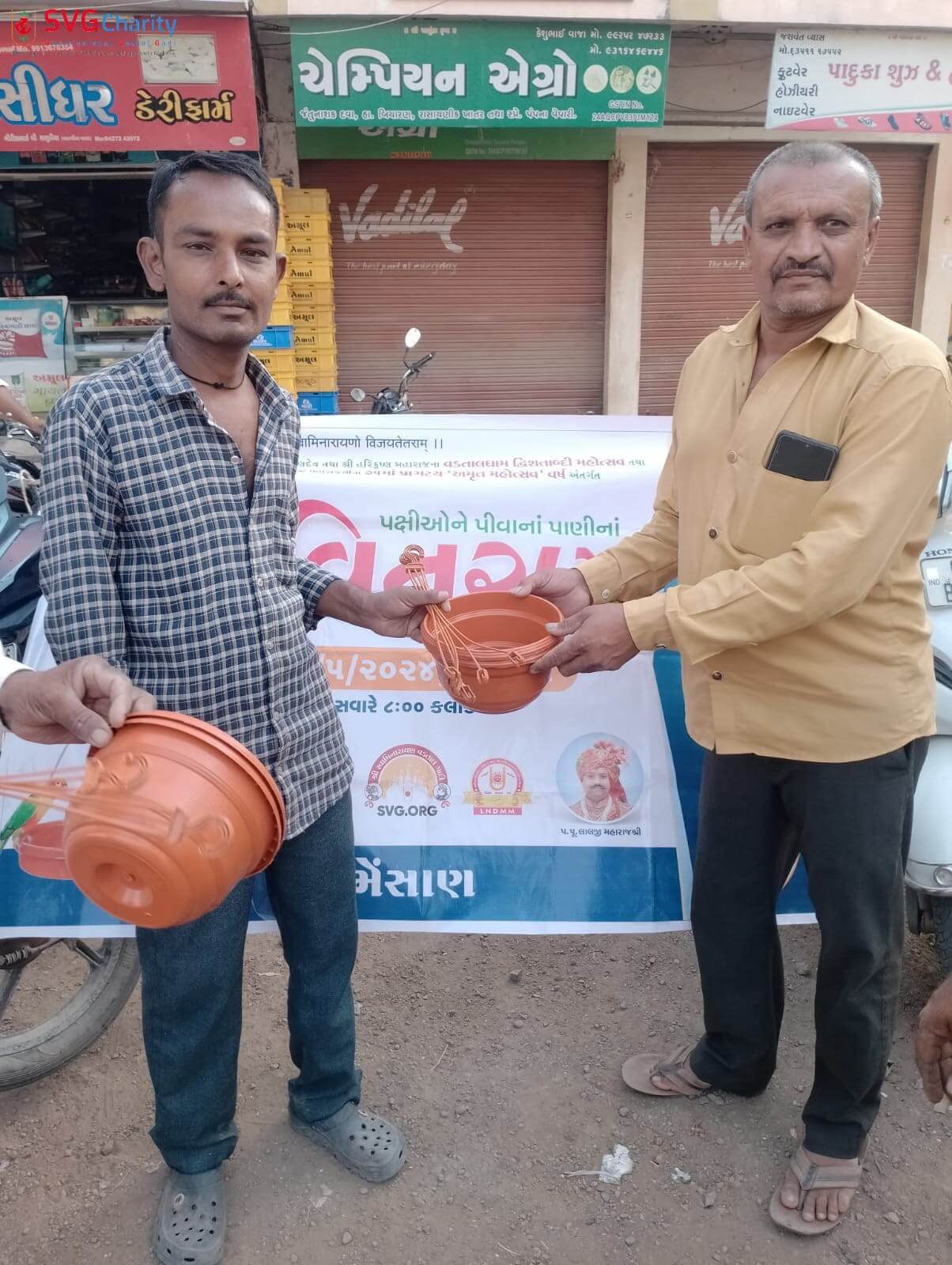 શ્રી સ્વામિનારાયણ સંપ્રદાયસ્ય દક્ષિણ વિભાગ શ્રી લક્ષ્મીનારાયણદેવ પિઠાધીપતિ પ.પૂ.સ.ધ.ધુ. શ્રી ૧૦૦૮ આચાર્ય શ્રી અજેન્દ્રપ્રસાદજી મહારાજશ્રીના 75મો પ્રાગટ્ય અમૃત મહોત્સવ નિમિતે SVG Charity ટ્રસ્ટ દ્રારા પક્ષીઓ માટે વિનામુલ્યે પીવાના પાણીનાં 50 શહેરોમાં 21000 જેટલા કુંડા વિતરણ કરવામાં આવ્યા.
