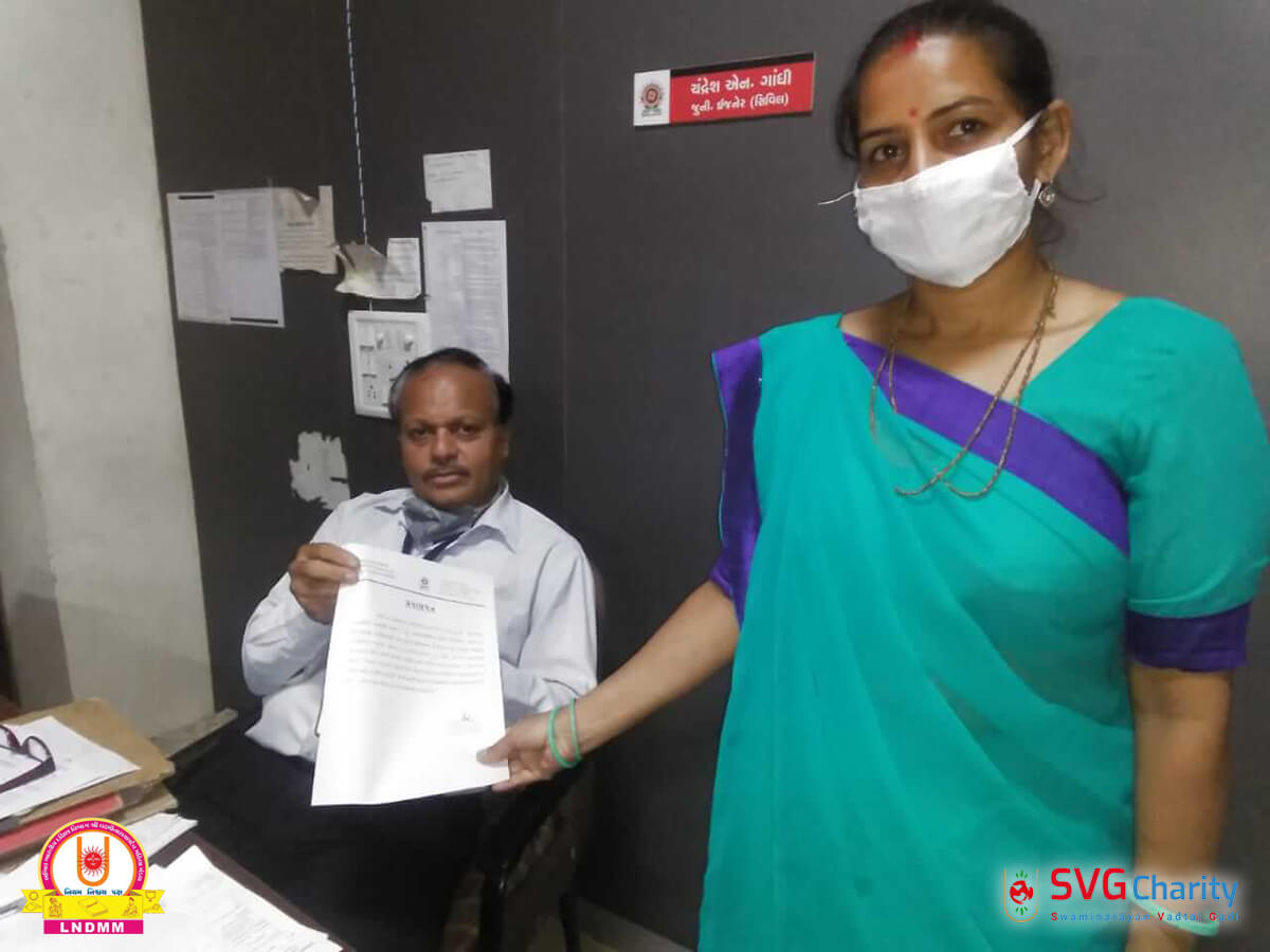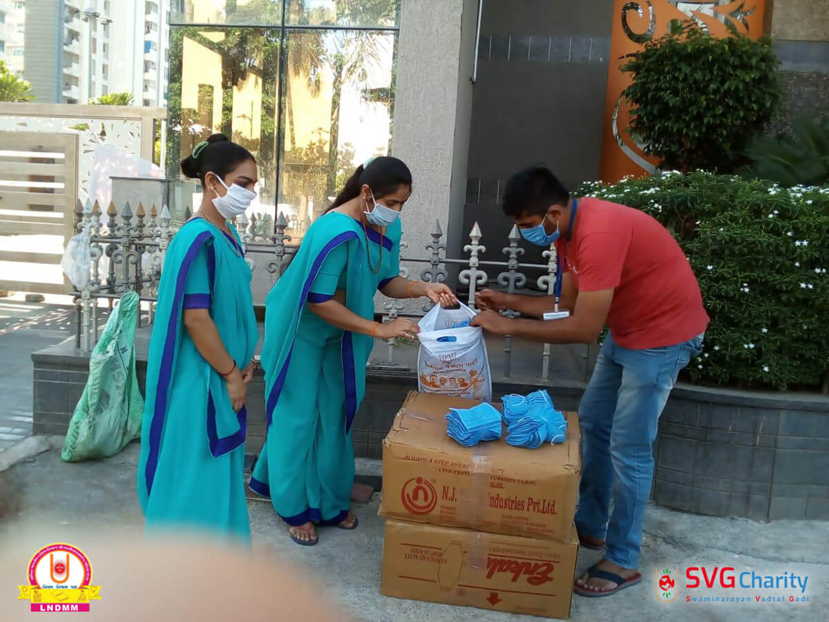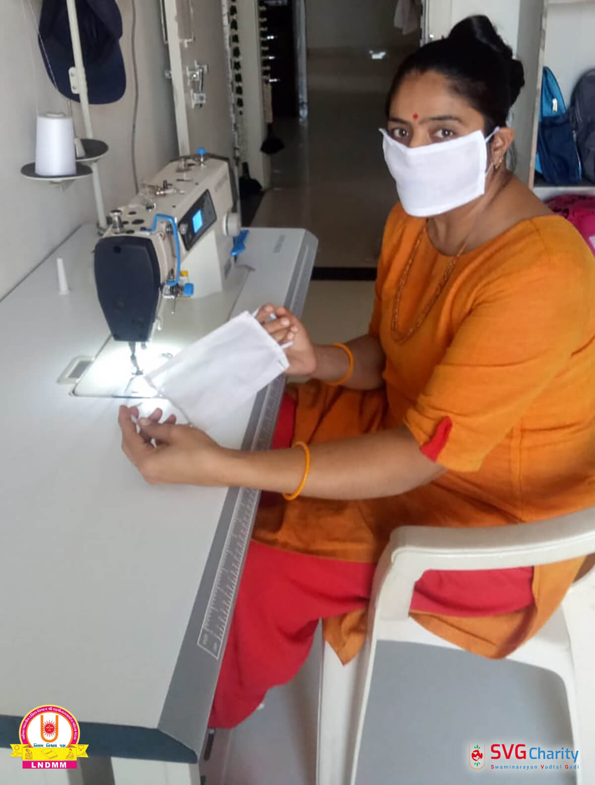 પ.પુ.અ.સૌ.ગાદીવાળા માતૃશ્રીના શુભ આશીર્વાદ સહ પ્રેરણાથી તથા પ.પુ.અ.સૌ. બાબારાજાશ્રીના શુભ માર્ગદર્શન હેઠળ કોરોના(COVID-19) મહામારી સમયે કતારગામ વિધાનસભા વોર્ડ નંબર 8 ના ડભોલી ગામ ખાતે શુકન સ્કાય એપાર્ટમેન્ટ માં રહેતા જાગૃતીબેન ડુંગરાણી દ્વારા ચાલતા લક્ષ્મીનારાયણદેવ મહિલા મંડળ (LNDMM) ની બહેનોએ કોવિડ ૧૯ની મહામારી મા લોકોના રક્ષણ માટે કોટનના સ્વહસ્તે બનાવેલા ૫૦૦ હોમ મેડ માસ્ક તથા ભારતીય જનતા પાર્ટી(BJP)ના મહિલા મોરચાના પ્રમુખ ગીતાબેન રામાણી ને આપ્યા. બીજેપી(BJP)ના કેન્દ્રીય મહિલા મોરચા દ્વારા જે અભિયાન ચલાવવામાં આવ્યું છે તેનો ખૂબ સારો પ્રતિભાવ મળ્યો.