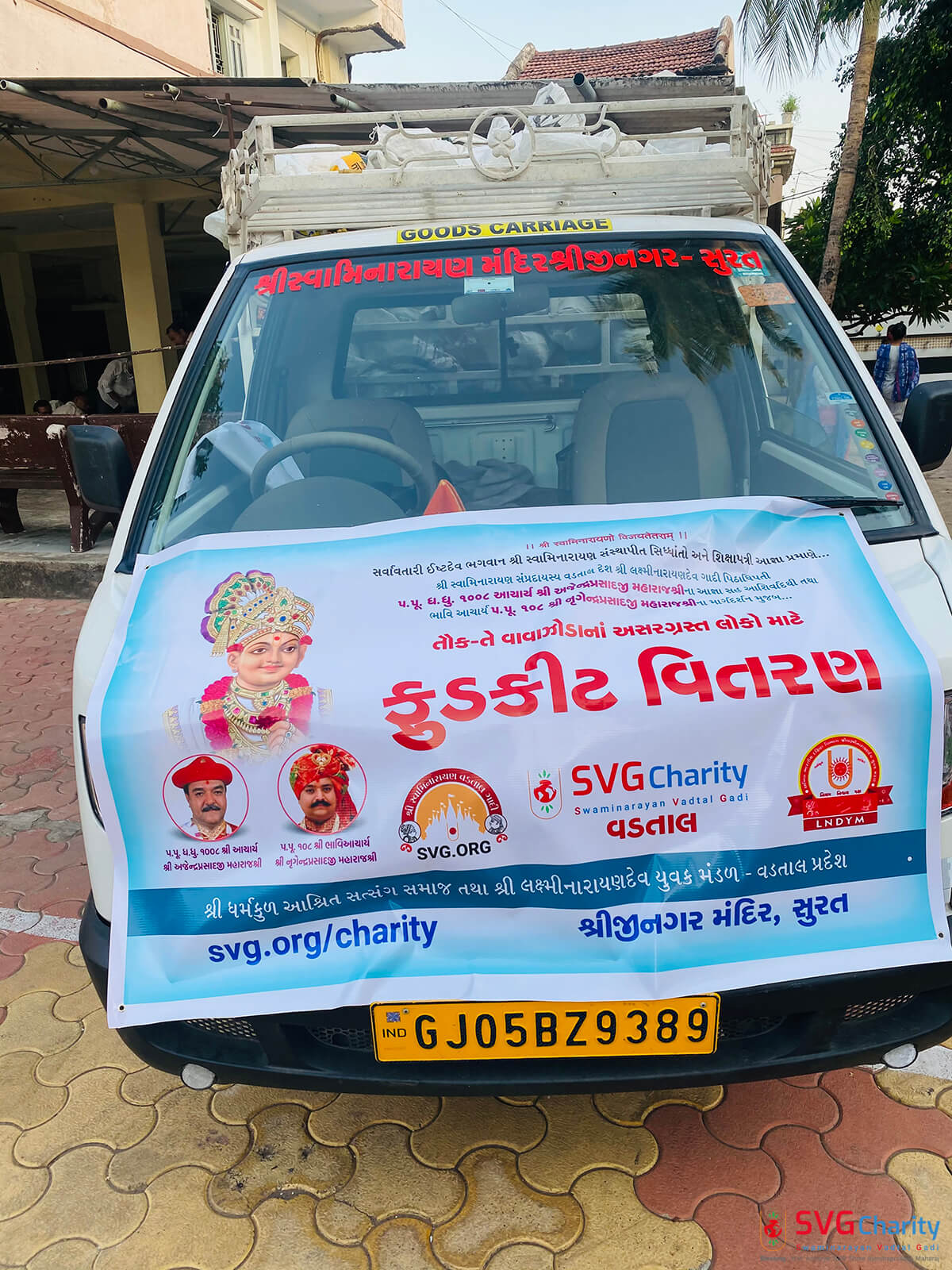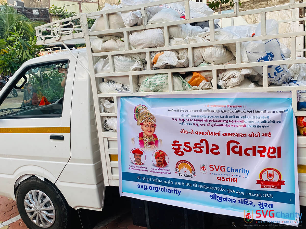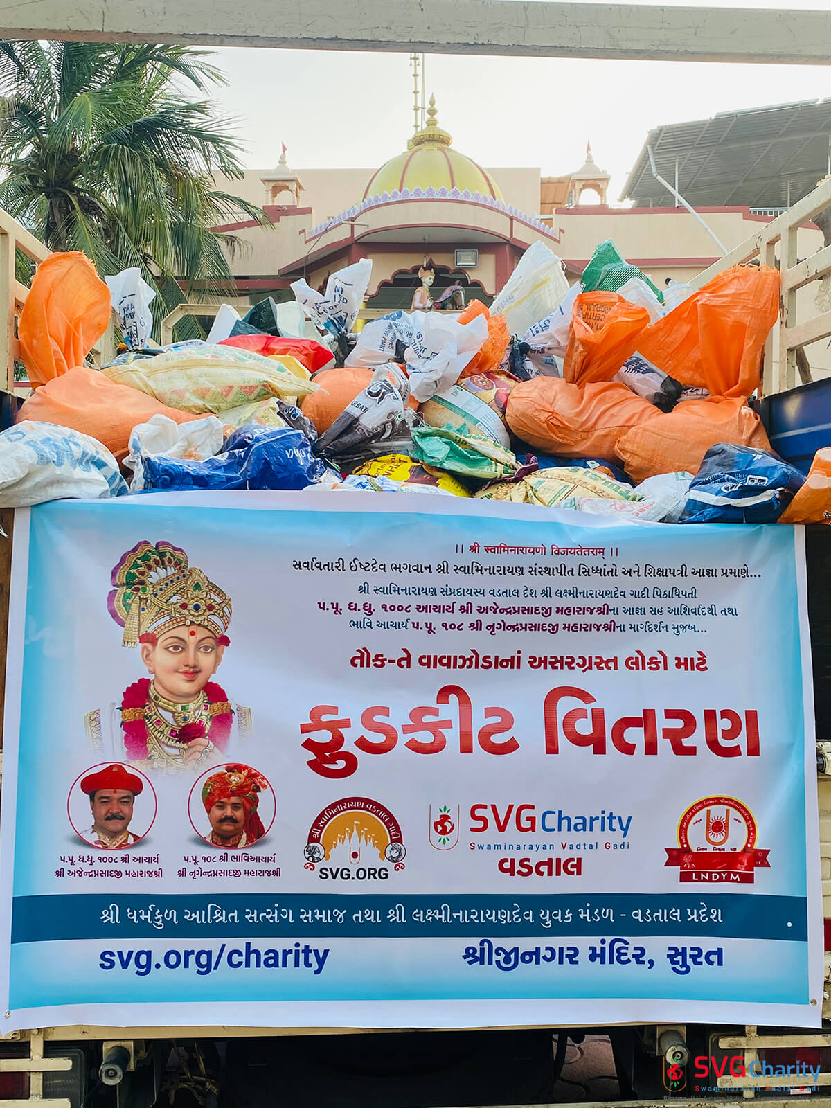 Home » Photo » SVG Charity : Emergency Food Kit Distribution During Cyclone Tauktae by Shreeji Mandir – Surat | 21 May 2021