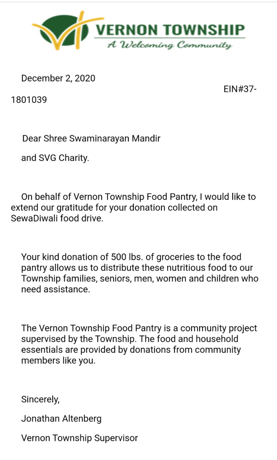 Thank you everyone who donated to Diwali Food and Supplies Drive to support Sewa non profit and SVG charity group to assist our local communities. Total contribution from our temple : Food : 263.57lbs; Hygiene supplies (masks, sanitizer, gloves, wipes, etc.) : 78lbs. All the donation will be donated to Vernon hills food pantry in Buffalo Grove.