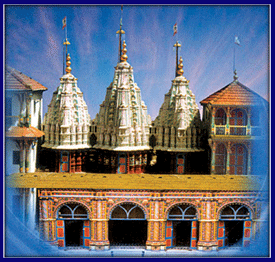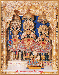 The devotees of Kutch-Bhuj, Shri Gangaram Mall, Sundarji Sutar & Hirji Sutar requested Bhagwan Swaminarayan to construct a temple in Bhuj. Bhuj temple was constructed under the guidance and supervision of Vaisnavanand Swami. Shreeji Maharaj installed the idols of Lord Nar-Narayan Dev in Vikram Samvat 1879 Vaishakh Shukla Panchami. (Friday May 15, 1823 A.D.)